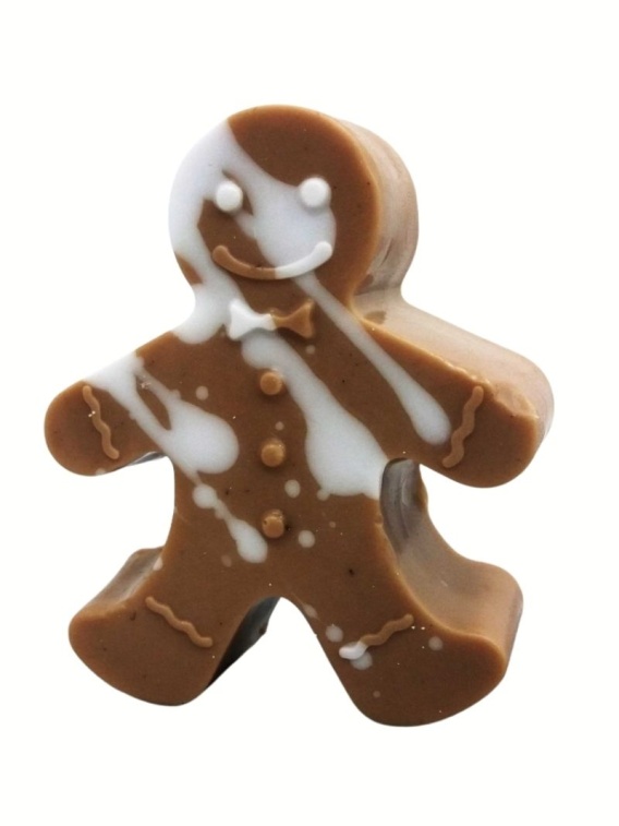 Świąteczne mydło w kształcie ciasteczkowego ludzika, pachnące czekoladą z orzechami. Ręcznie robione, delikatnie nawilża i wprowadza świąteczny nastrój.