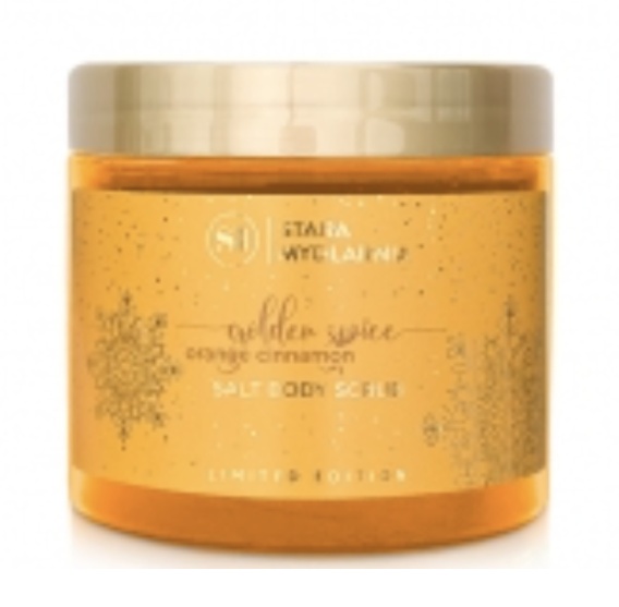 Peeling solny Golen Spice o słodkim zapachu słodkich, soczystych pomarańczy i aromatycznego cynamonu, to wyjątkowa, limitowana edycja, która odżywia skórę i pobudza jej regenerację. Wzbogacony ekstraktem z pomarnczya, skutecznie usuwa martwy naskórek, poprawia mikrokrążenie i wspiera walkę z cellulitem. Skóra staje się miękka, gładka i promienna, a słodko-korzenny aromat wprowadza w magiczny, świąteczny nastrój.