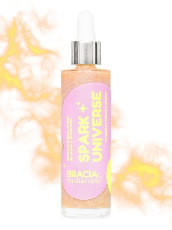 Delikatny i lekki emolient z kokosa, olej kokosowy frakcjonowany, kompozycja zapachowa, olej jojoba gold nierafinowany, krzemionka, świetliste drobiny, witamina E